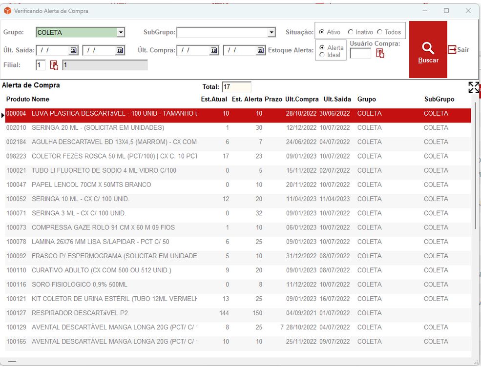 DashBoard de Alerta de Compra, verificando estoque ideal