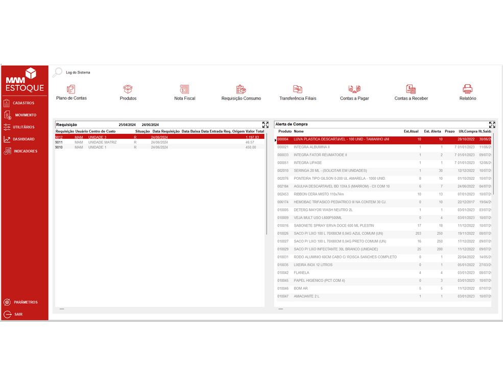Controle de materiais necessários na unidade e setores em requisições on-line, sem necessidade de papel